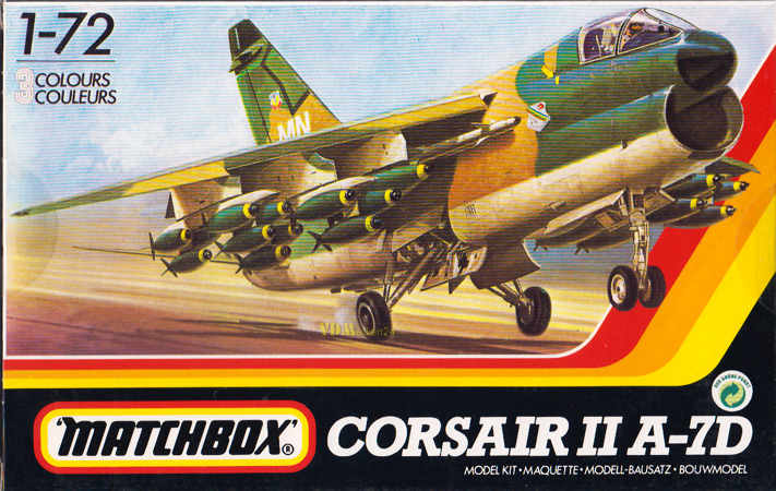 1:72er Plastikspritzgußmodell des US-amerikanischen einstrahligen Kampfflugzeuges Vought Corsair II in der Serienversion A-7D.